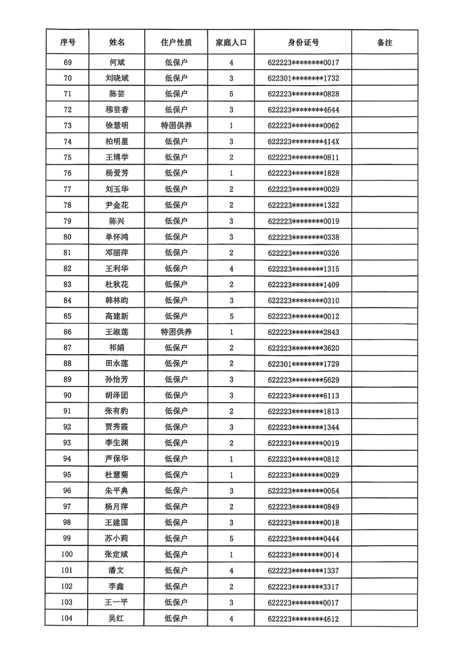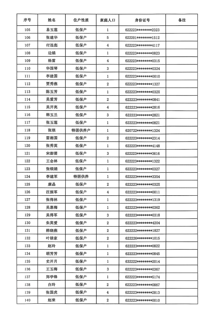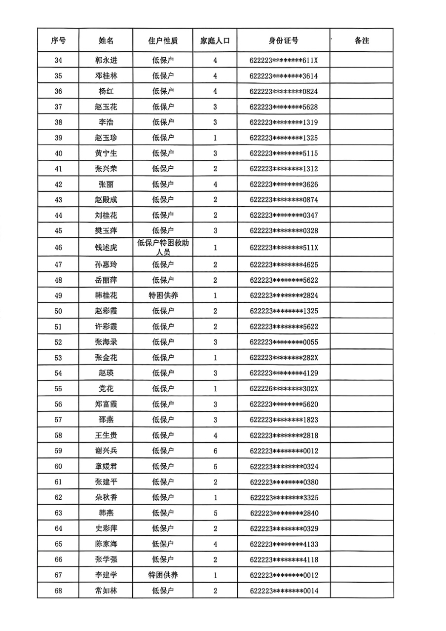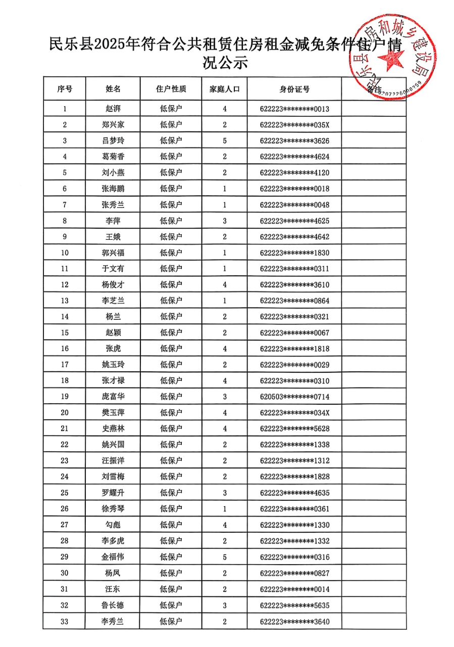 民乐县2025年符合公共租赁住房租金减免条件住户情况公示