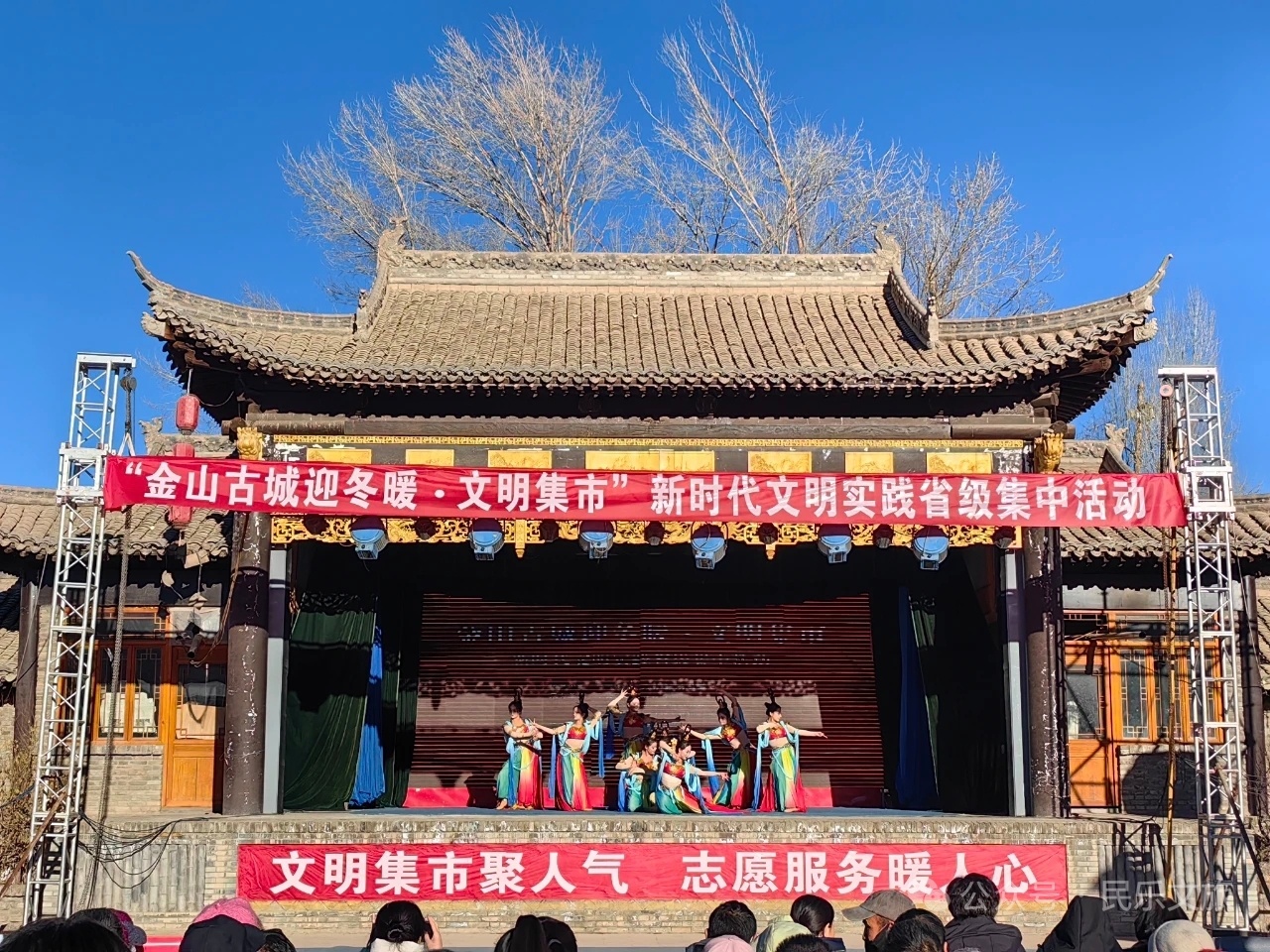 为深化拓展全省新时代文明实践中心建设,落实“一月一主题”文明实践集中活动要求。12月3日,一场以“金山古城迎冬暖·文明集市”为主题的新时代文明实践省级集中活动文艺演出在古城精彩上演。活动现场不仅有精彩纷呈的文艺演出,还有沉浸式的非遗展示展销,一场好看、好玩、更好逛的文明之旅。