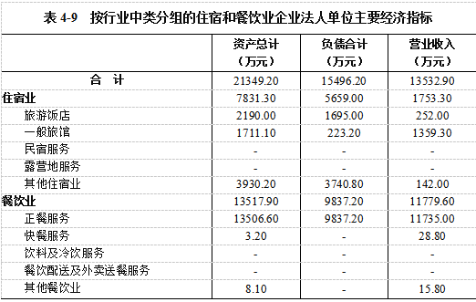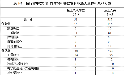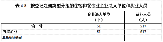 在住宿和餐饮业企业法人单位从业人员中,内资企业占100%(详见表4-8)。