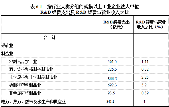 2023年,规模以上工业企业法人单位R&D经费支出2781.4万元,比2018年下降75.11%;R&D经费与营业收入之比为0.98%。规模以上工业企业法定代表人单位分行业R&D经费支出及R&D经费与营业收入之比(详见表6-1)。