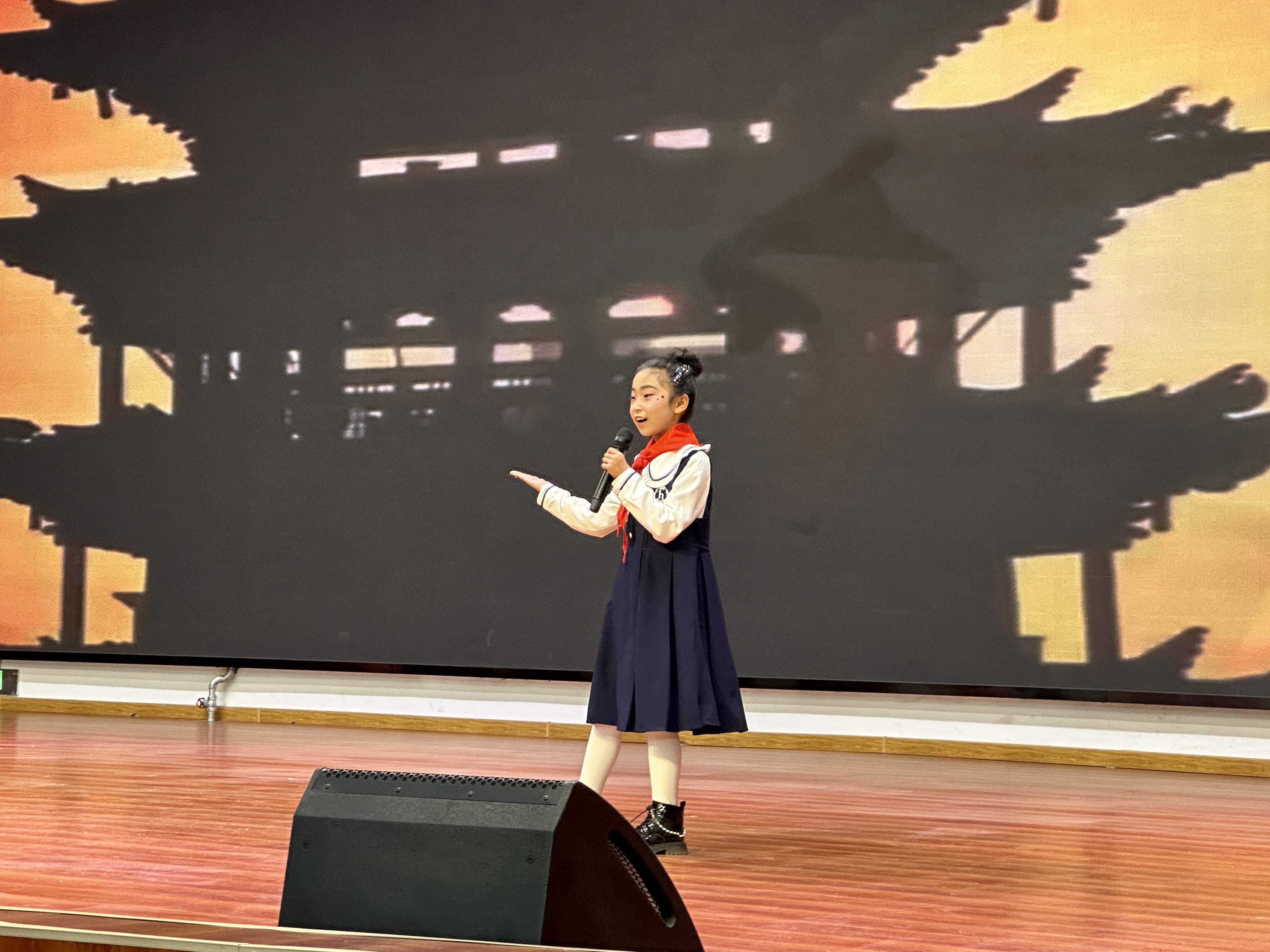 比赛现场气氛热烈,洋溢着青春与活力,来自各中队的参赛选手化身“红领巾代言人”,以真挚的童声深情讲述革命先烈的英勇事迹、民乐承载的红色历史,以及新时代优秀共产党员的奋斗故事;他们描绘家乡从“风吹石头跑”到“林茂粮丰”的生态变迁,让绿水青山就是金山银山的理念在队员们心中深深扎根;在红色故事与绿色发展的时代回响中,另一幅画卷在赛场徐徐展开,小讲解员们身着传统服饰介绍国家级非物质文化遗产“八仙灯会戏”的由来与舞姿,将中华优秀传统文化的魅力展现得淋漓尽致。