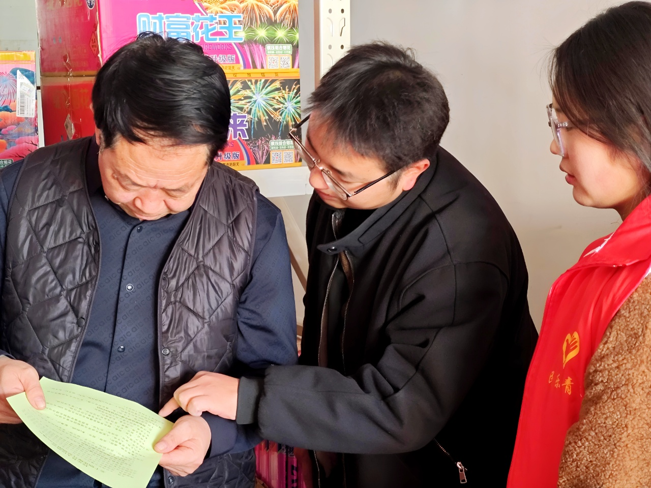 活动中,青年志愿者深入烟花爆竹经营店、自习室、宾馆等重点场所,分组行动、拉网排查,紧紧围绕“隐患清零”目标,细致检查消防设施、电气线路、应急设备等关键环节。针对发现的问题,志愿者现场提醒负责人及时整改,并结合冬季消防安全特点,向经营者和群众发放宣传资料,讲解烟花爆竹安全燃放、用电防火、应急逃生等知识。通过真实案例剖析讲述,为大家敲响安全警钟,切实提升安全防范意识和自救互救能力,从源头上消除安全隐患,以青春志愿力量守护辖区平安。