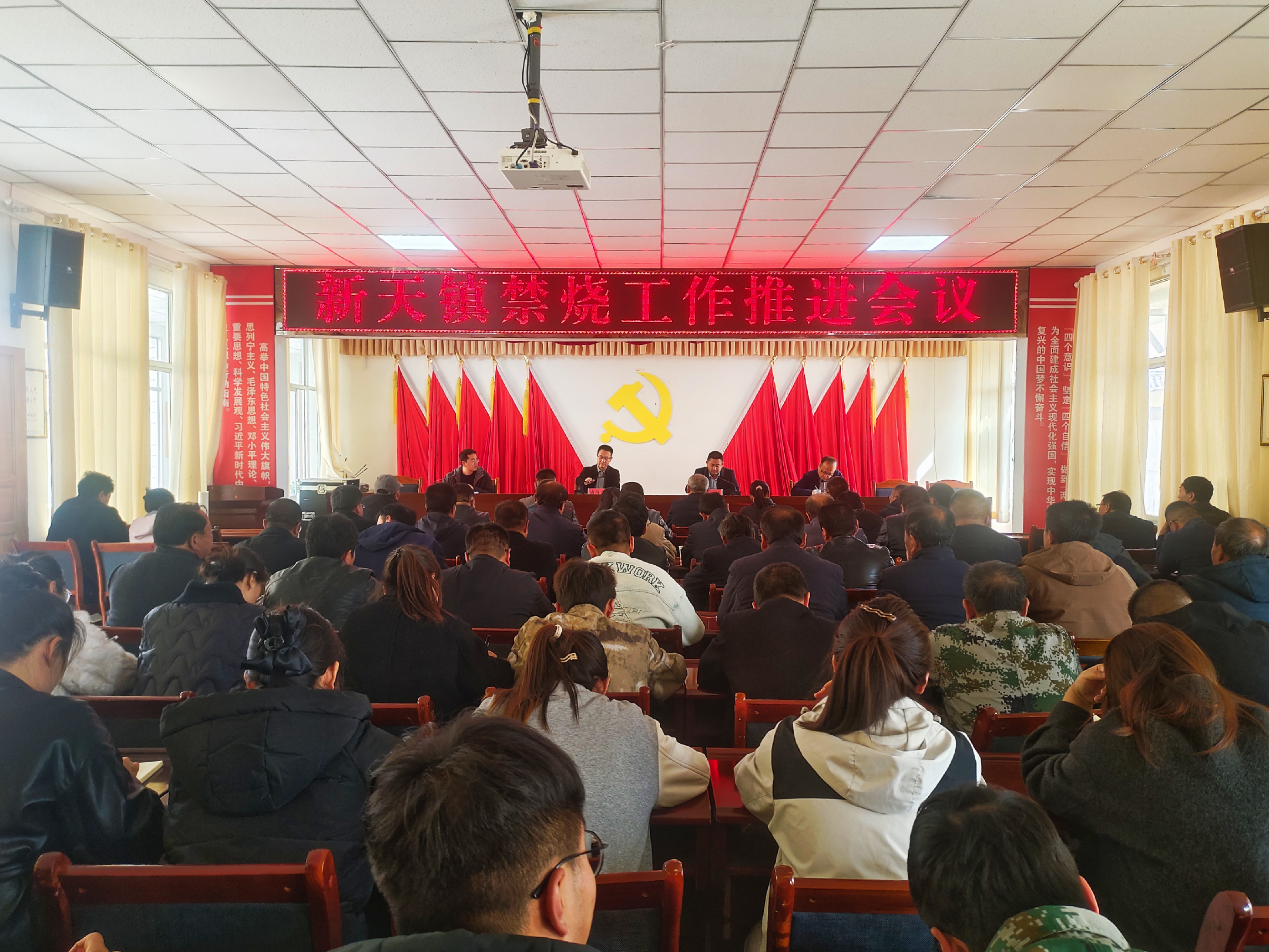 3月18日,新天镇召开全镇防火禁烧工作推进会议。会议强调,秸秆禁烧事关生态环保大局和群众生命财产安全,要切实提高思想认识,摒弃麻痹大意思想和侥幸心理,牢固树立“全域、全时段、全面”禁烧理念,以最严标准、最实举措、最硬作风,全力筑牢秸秆禁烧“防火墙”。镇全体领导干部、各村村干部共90余人参加会议。