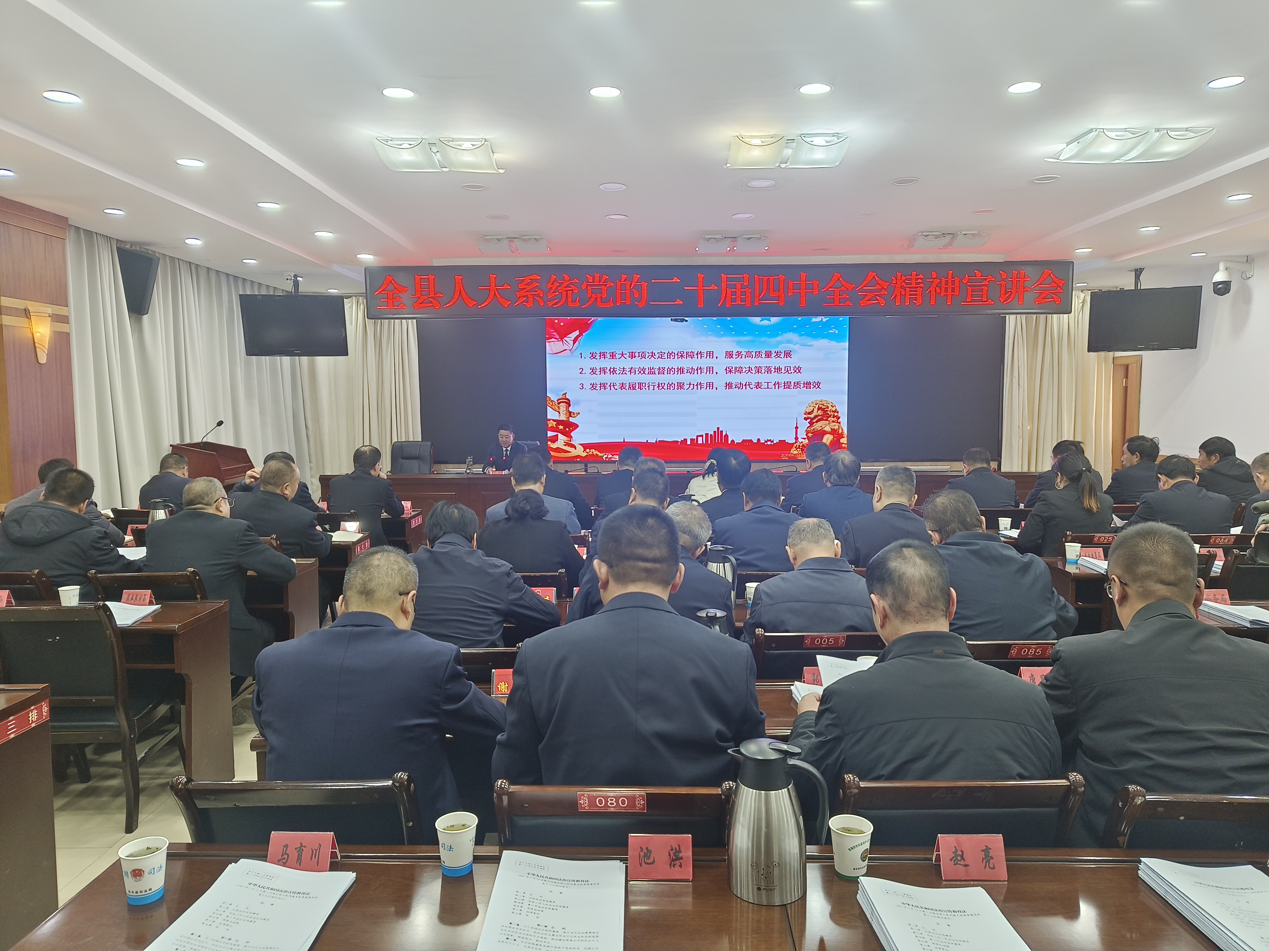 11月25日,县人大常委会主任张自新在县人大机关宣讲党的二十届四中全会精神,县人大常委会副主任赵玉林、赵生贵、葛永斌参加。