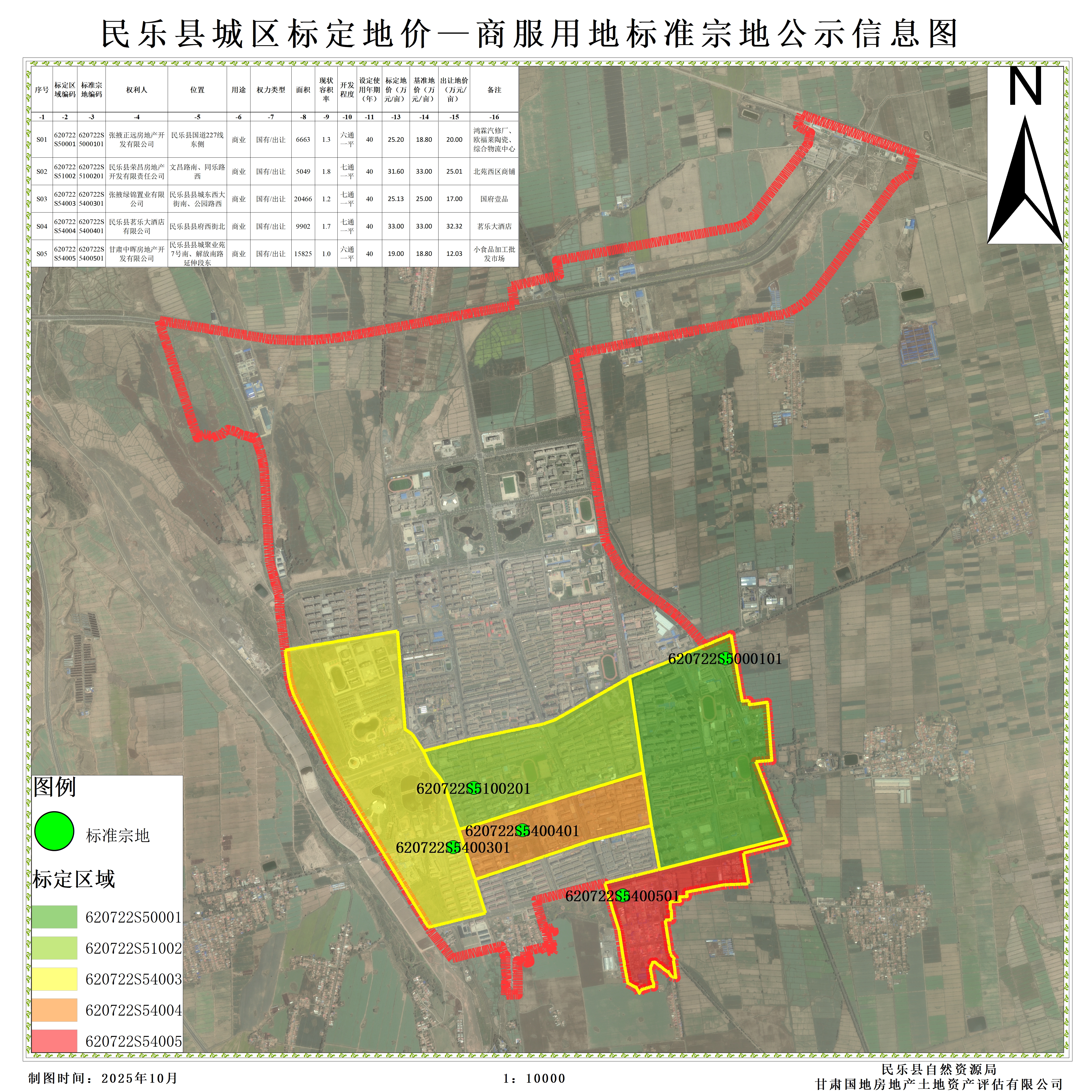 2.民乐县城区标定地价—商业用地标准宗地公示信息图