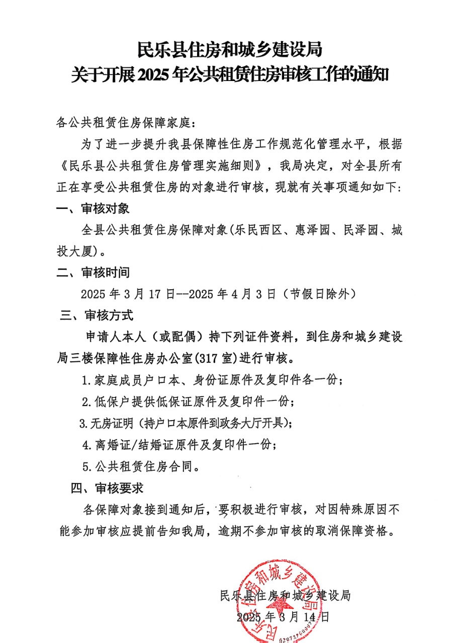 关于开展2025年公共租赁住房审核工作的通知