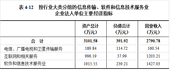2023年末,信息传输、软件和信息技术服务业企业法人单位资产总计3101.58万元,比2018年末下降13.43%;负债合计391.92万元,比2018年末下降57.48%。