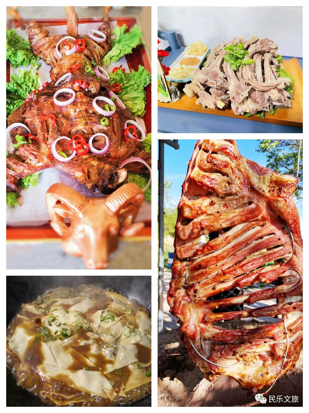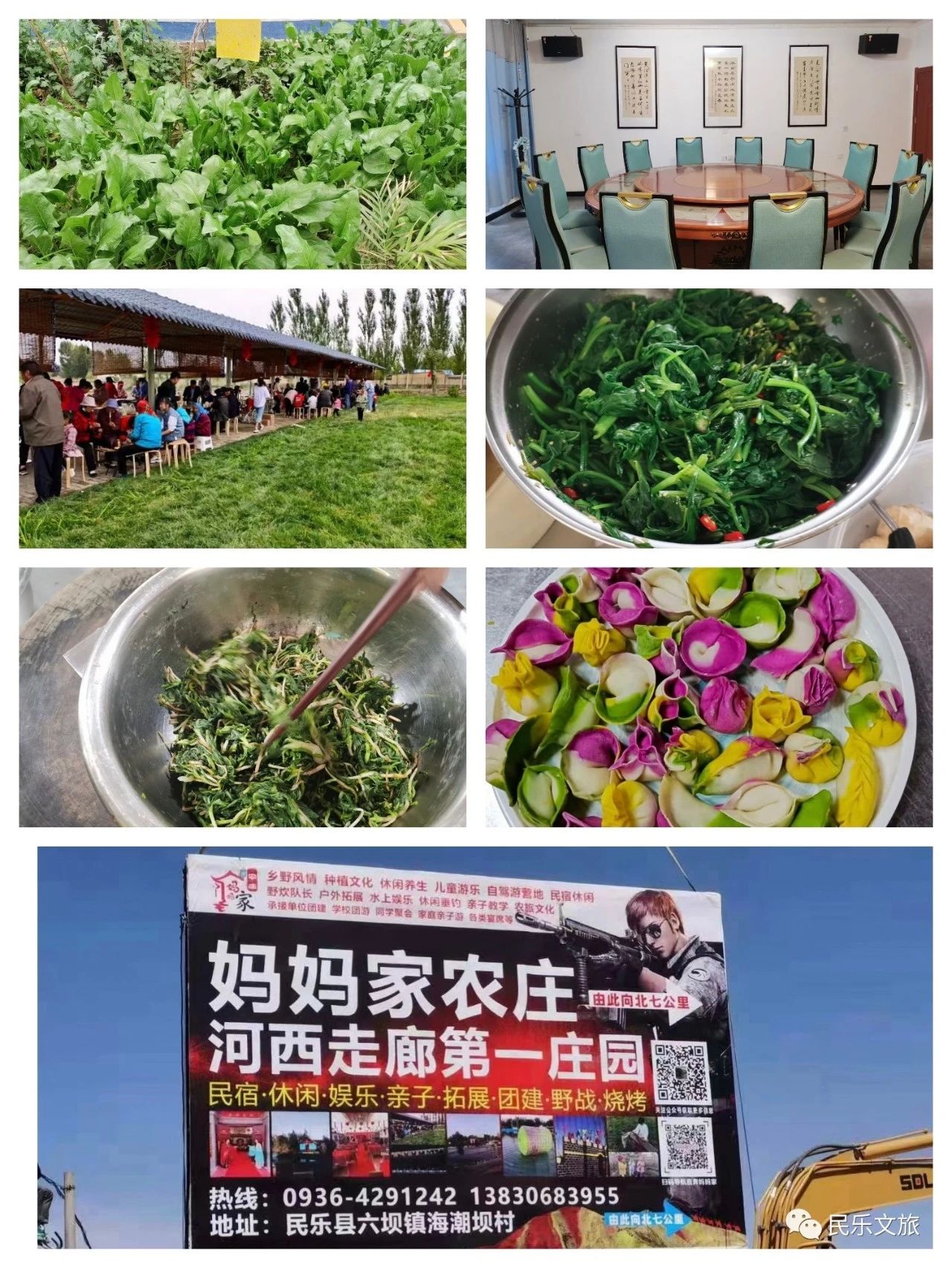 6.田园假日生态园:位于民联镇屯粮村,所选羊肉均为民联羊羔,因放养于民联镇天然、绿色、无污染的优质草场,食用沙葱、羊胡、柴胡、车前子、蒲公英、小茴香、茵陈、黄精、荆芥、薄荷、大黄等几十种中草药,使得肉质美味、鲜嫩,具有独一无二的药用价值和滋补价值。田园假日生态园手抓羊肉、黄焖羊肉、羊肉焖卷子、馕坑烤全羊、蒸羊血、羊筏子、羊头蹄等系列羊肉产品为民乐特色美食天花板,吃的是豪放吃的是鲜香,吃的是焦香,吃的是补养。
