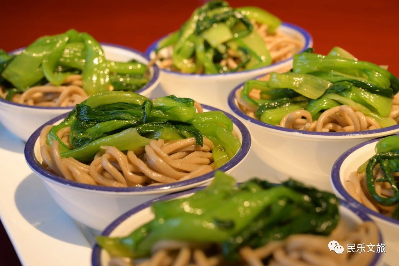 8.扁都口青稞面搓鱼:是民乐县南丰乡一带的特产,选用当地特产青稞面,当地山泉水化温盐水,与青稞面和合,揉成面团,搓棒切小段,再搓成两头细中间粗的圆面条,煮熟捞出上盘,拌入绿菜,调上香醋、油辣子、芥末、蒜泥、葱韭等佐料,并拌以山乡特有的山野菜一一油菜、黄花子、猪耳朵等,口感滑溜,鲜香爽口。