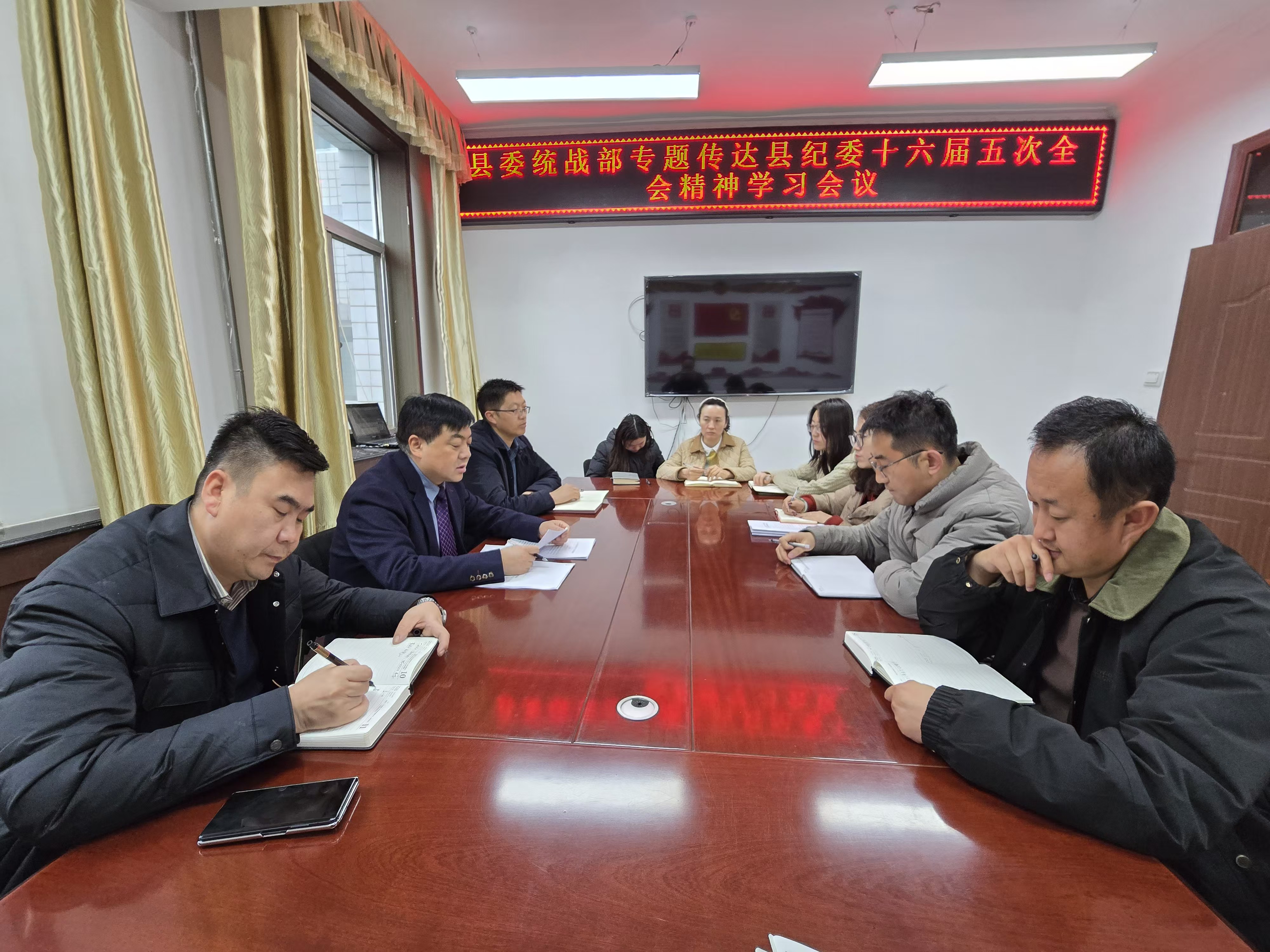 1月17日,县委统战部召开专题会议传达学习县纪委十六届五次全会精神并安排部署贯彻落实工作,全体领导干部职工参加。