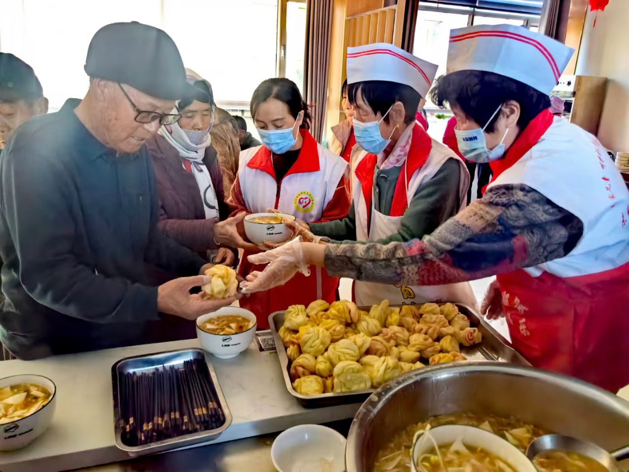 志愿者们一大早就忙活着为老人们准备了节日美食——粉汤花卷。游戏结束后,老人们有序排队,享用了美味的午餐,度过了一个欢乐祥和的元旦佳节。