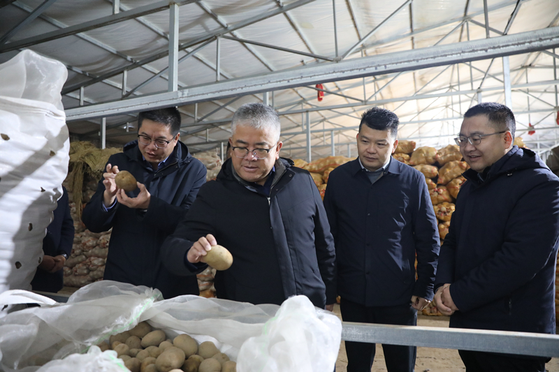 张鹏一行先后来到洪水镇叶官村及集华农业、丰源薯业、爱味客、天润园食品等地,与相关负责人详细交流,深入了解马铃薯种薯繁育、生产、仓储、加工、销售及项目建设等情况,听取有关工作汇报,并就下一步工作提出要求。